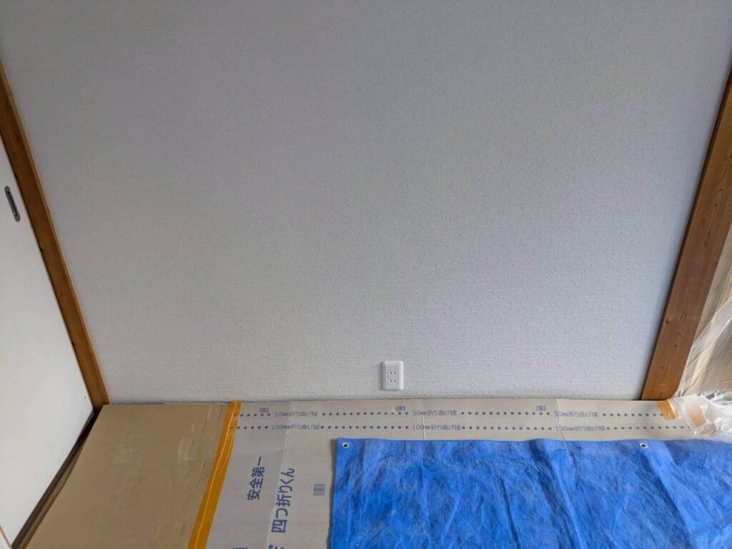 施工にかかった日数はわずか3日間。ベテランの職人が手際よく対応し、お客様の生活に支障のないスケジュールで進行しました。土壁をクロス仕上げに変えたことで、室内はより明るく清潔感のある印象へと生まれ変わり、お手入れのしやすさも格段に向上。今後の暮らしにおいても快適に過ごせる空間が整いました。