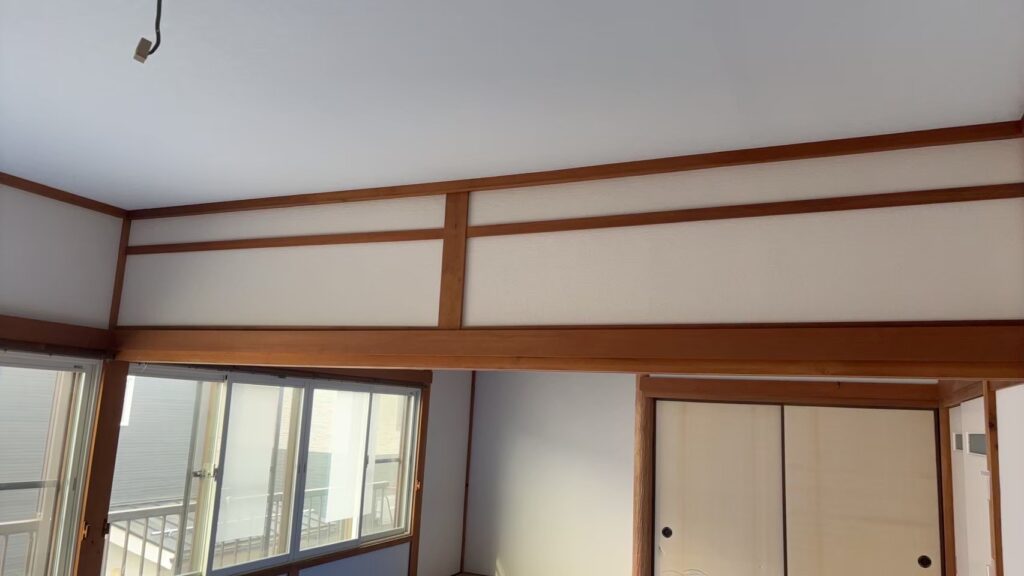 和の趣を残しつつ、現代的で清潔感のある印象へと変えるため、壁と欄間部分にもクロスを施すことにしました。