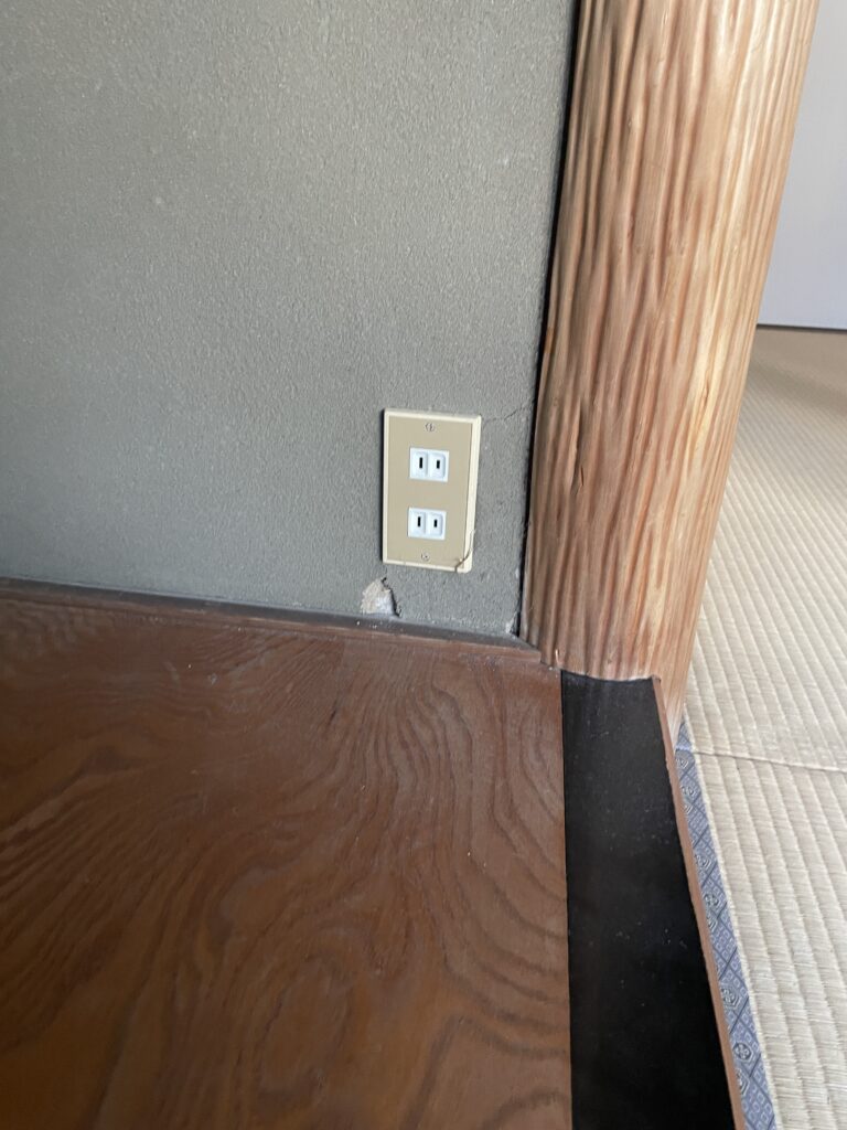 古いスイッチカバーの周辺も、土壁が崩れている様子が見て取れます。土壁がポロポロ落ちるストレスは計り知れません。