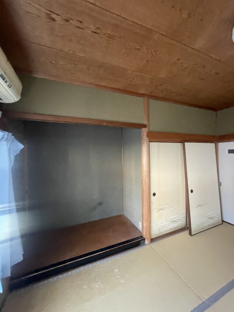 床の間の壁には、家具の移動などでついたと思われる傷や汚れがあり、見た目にも古さが際立っていました。