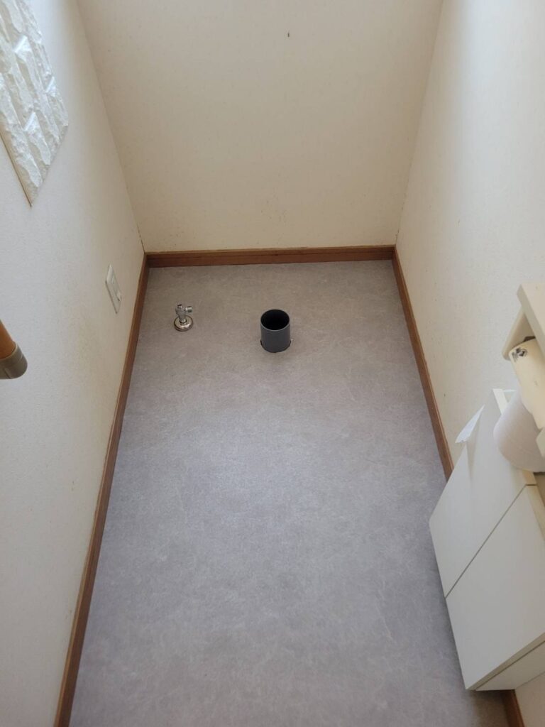 今回はトイレ本体の交換に加え、床材の張り替えもご提案させていただきました。設備のみの交換でも改善は可能ですが、内装もあわせて施工することで、より快適で統一感のある空間に仕上がります。