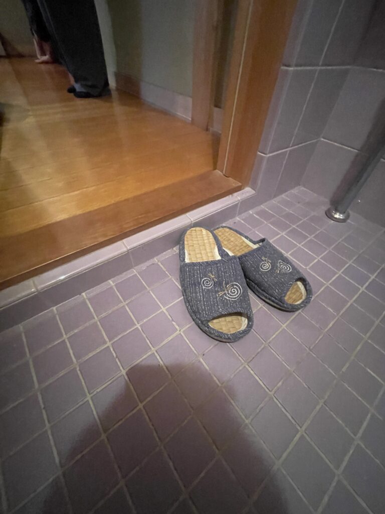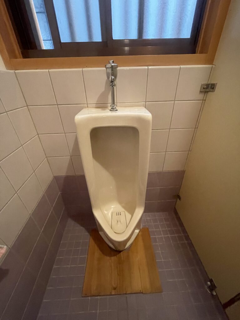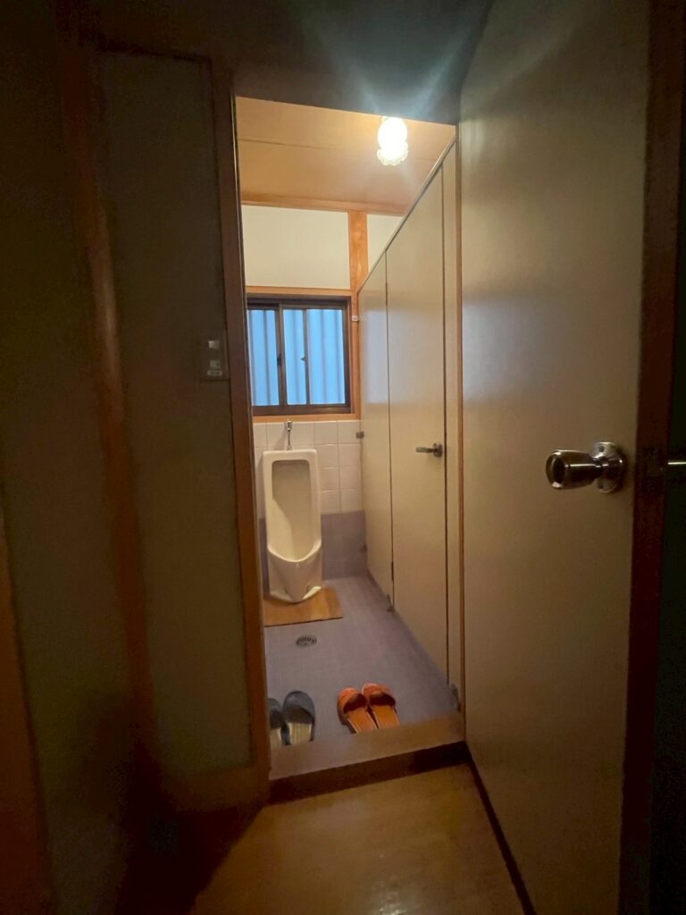 一つのトイレ空間に、小便器と和式トイレが並んでいる構図でした。間仕切りがあることで圧迫感があります。